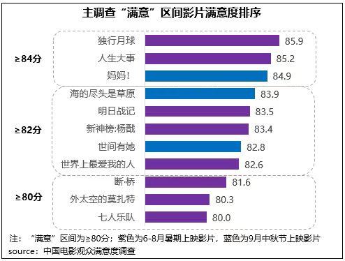 中国电影观众满意度调查:近三个月15部影片中有13部进入“满意”区间