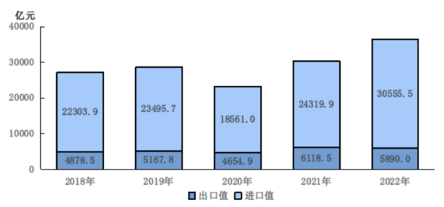 全年北京地区进出口总值36445.5亿元,比上年增长19.7%。其中,进口30555.5亿元,增长25.7%;出口5890.0亿元,下降3.8%。