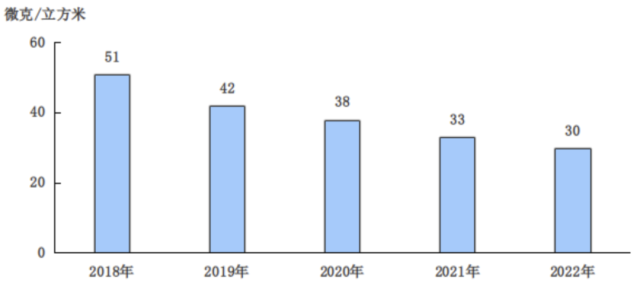图9 2018-2022年细颗粒物(PM2.5)年均浓度