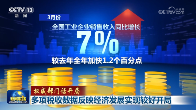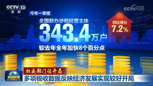 央视网消息(新闻联播):在国新办今天(4月6日)举行的“权威部门话开局”系列主题新闻发布会上,国家税务总局负责人表示,多项税收数据反映出我国经济发展实现了较好开局。