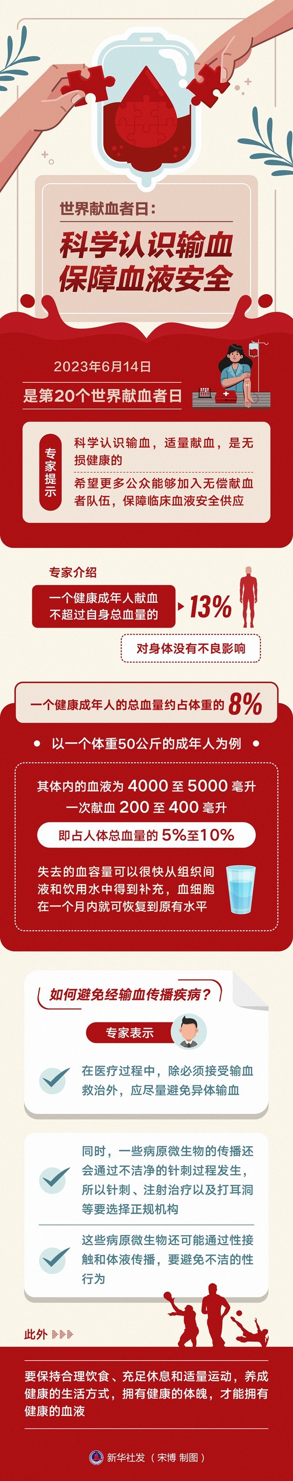 新华社北京6月13日电 题:世界献血者日:科学认识输血,保障血液安全