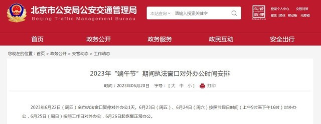 北京市交管局:6月22日全市执法窗口暂停对外办公1天