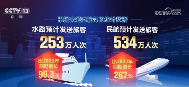 端午假期,全国铁路、公路、水路、民航预计共发送旅客14047万人次,比2022年同期增长89.1%。其中,铁路预计发送旅客4326万人次,比2022年同期增长150.2%;公路预计发送旅客8934万人次,比2022年同期增长64.4%;水路预计发送旅客253万人次,比2022年同期增长99.3%;民航预计发送旅客534万人次,比2022年同期增长287%。