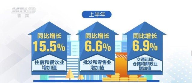 2023年上半年,我国服务业增加值同比增长6.4%,接触型服务业较快增长。上半年,住宿和餐饮业、批发和零售业、交通运输、仓储和邮政业增加值同比分别增长15.5%、6.6%和6.9%。