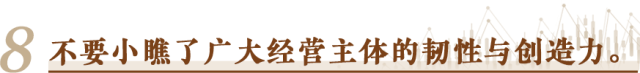 书写这份“中国经济半年报”的,不光是宏观政策的制定者,还有亿万经营主体。它们在市场经济风风雨雨中摸爬滚打过来,承载着就业,创造着财富,推动着创新,体现着社会责任。无论是服务业还是制造业,无论是传统产业还是战略性新兴产业,哪一行哪一业,缺得了充满活力的经营主体?看宏观政策是否有效,标准之一就是看能否持续广泛激发经营主体的活力。一句话,任何时候都不要小瞧了广大经营主体的韧性与创造力,尊重他们,帮助他们,相信他们。