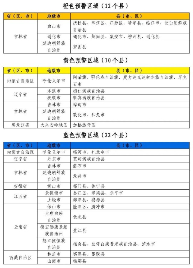 央视网消息:据“中国水利”公众号消息,水利部和中国气象局8月21日18时联合发布橙色山洪灾害气象预警:预计,8月21日20时至8月22日20时,内蒙古东北部、辽宁东部、吉林东南部等地部分地区发生山洪灾害可能性较大(黄色预警),其中,吉林东南部局地发生山洪灾害可能性大(橙色预警),预警区域涉及的县(市、区)见下表。其他地区也可能因局地短历时强降水引发山洪灾害,请各地注意做好实时监测、防汛预警和转移避险等防范工作。