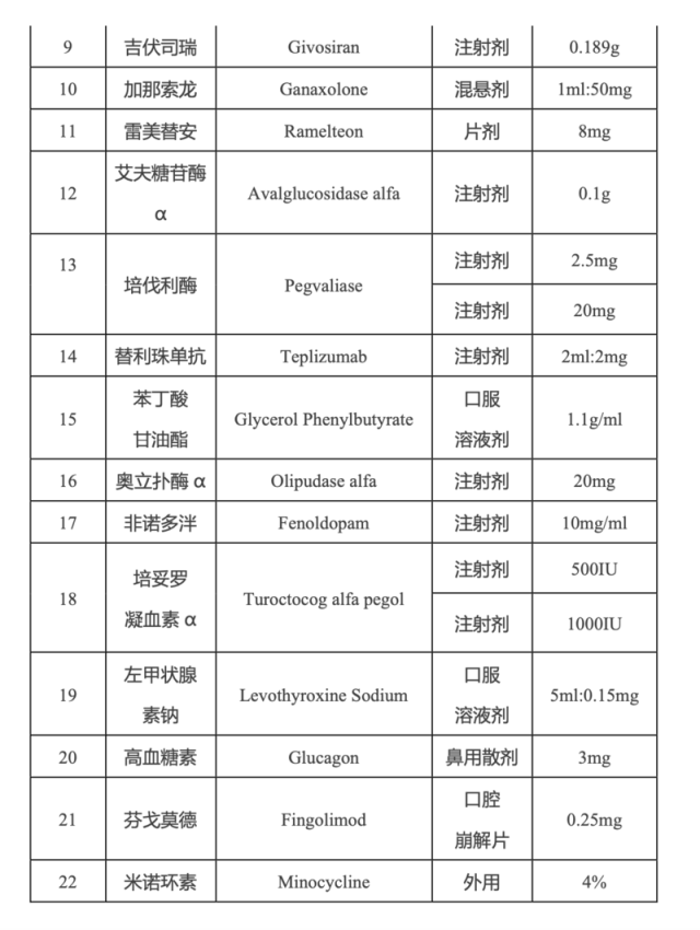 此外,经多部门组织专家遴选论证,听取临床一线意见,第四批清单遴选的药品中包括了部分罕见病用药。例如治疗庞贝病患者的艾夫糖苷酶α,剂型为注射剂,规格仅为0.1g。
