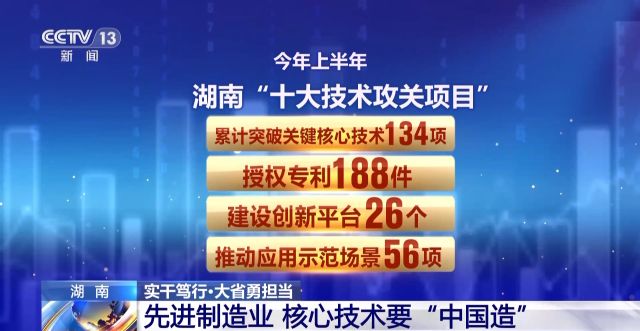 今年上半年,湖南“十大技术攻关项目”累计突破关键核心技术134项,授权专利188件,建设创新平台26个,推动应用示范场景56项。与此同时,湖南正在加快推进省级“四大实验室”的建设,为先进制造业创新研发提供基础研究和成果转化的保障。