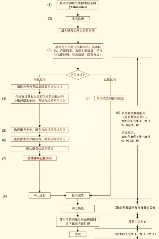 (1)考生应在规定时间登录“中国研究生招生信息网”(网址:https://yz.chsi.com.cn)浏览报考须知,并按省级教育招生考试机构、报考点以及报考招生单位的网上公告要求报名;