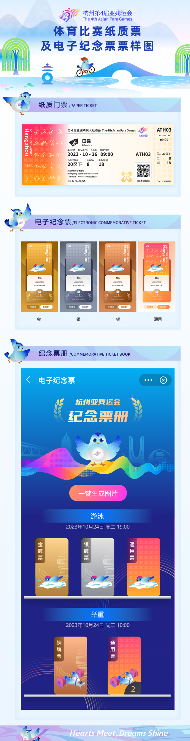 金秋“折桂”!杭州亚残运会体育比赛门票启动线上销售 门票票面设计公布