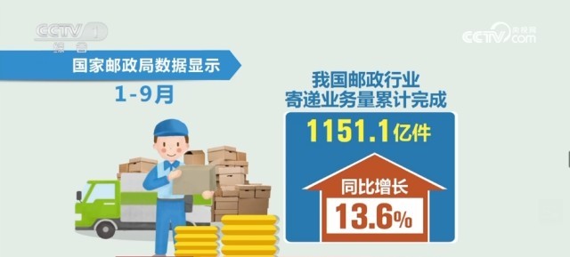 10月21日,国家邮政局发布数据显示,1—9月,我国邮政行业寄递业务量累计完成1151.1亿件,同比增长13.6%。其中,快递业务量(不包含邮政集团包裹业务)累计完成931.2亿件,同比增长16.4%。1—9月,我国国际/港澳台快递业务量累计完成21.4亿件,同比增长55.3%。