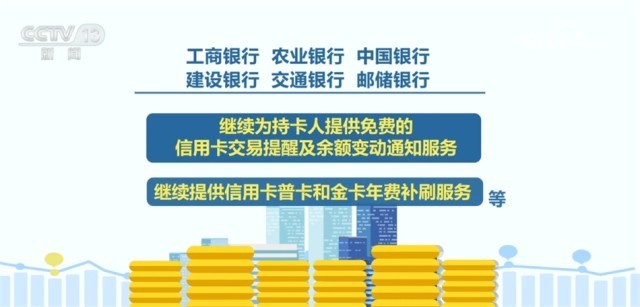 多项减免措施从今天起实施,部分银行此前已经降低或减免的相关收费项目将继续延续优惠措施。六家银行还承诺,继续提供信用卡容时、容差服务,也就是说如果信用卡持卡人在还款日没有足额还款,所差金额不高于10元,或者还款日期晚于还款日不超过3天,银行将视同全额还款,将没有偿还的金额自动转入下期账单。未来,六大行还将陆续把容差金额扩大到100元。