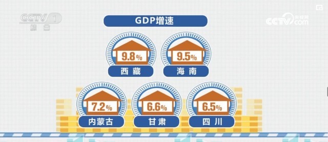 从地区生产总值增速看,前三季度,17个省份地区生产总值增速快于全国5.2%的增速。其中,西藏(9.8%)、海南(9.5%)、内蒙古(7.2%)、甘肃(6.6%)及四川(6.5%)等5个省份的地区生产总值增速最快。