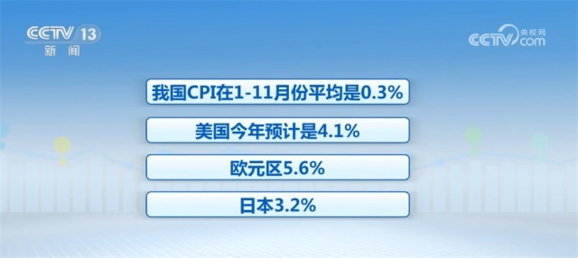宁吉喆表示,消费物价上涨率也就是通胀率,我国CPI在1—11月份平均是0.3%,美国今年预计是4.1%,欧元区5.6%,日本3.2%。