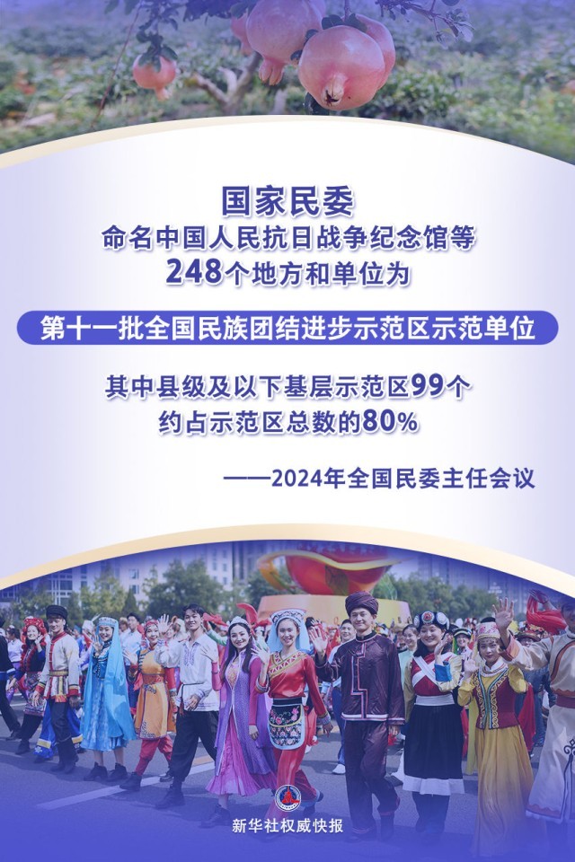 会议明确2024年工作重点:国家民委将举办第十二届全国少数民族传统体育运动会,推进《中华民族交往交流交融史》编纂,编好用好《中华民族共同体概论》,推出一批体现各民族交往交流交融和中华民族共同性的文艺精品、文创产品、文博展品等,推动铸牢中华民族共同体意识深入人心。