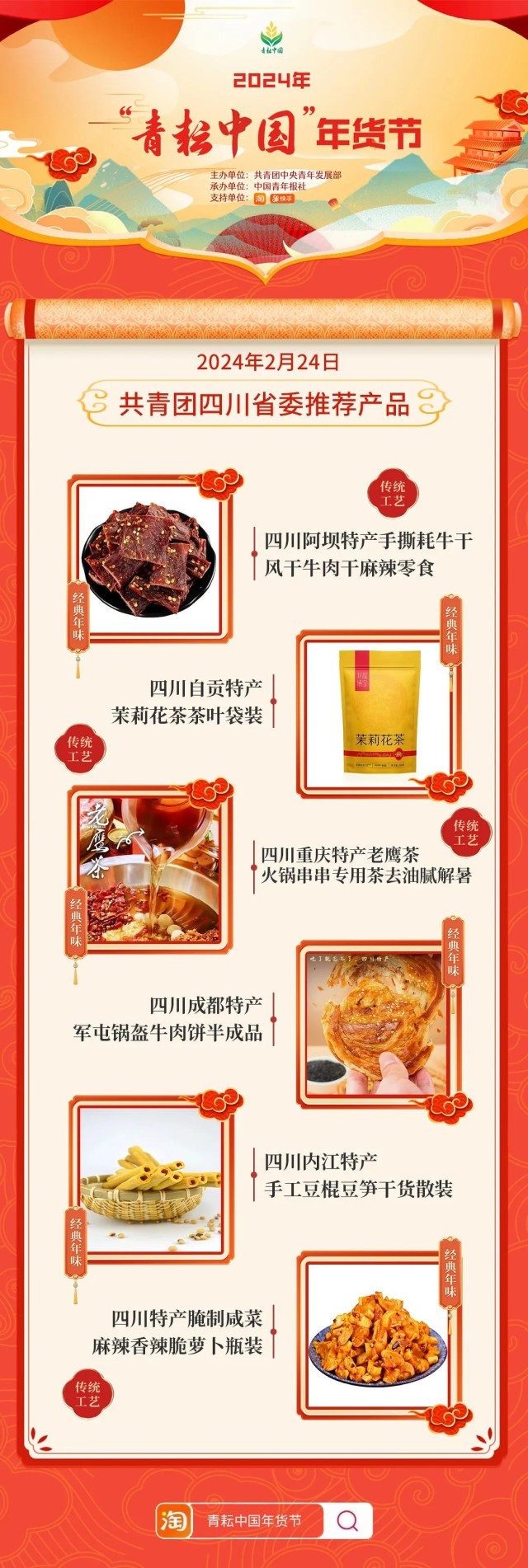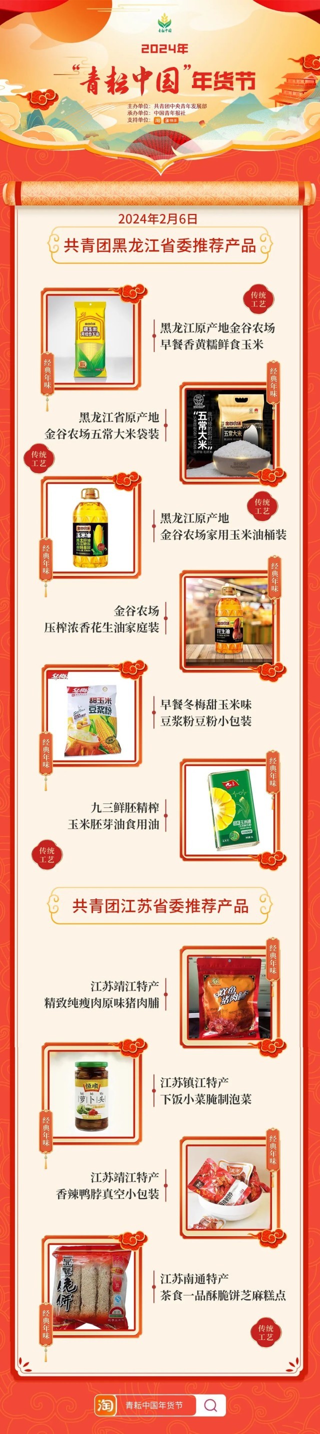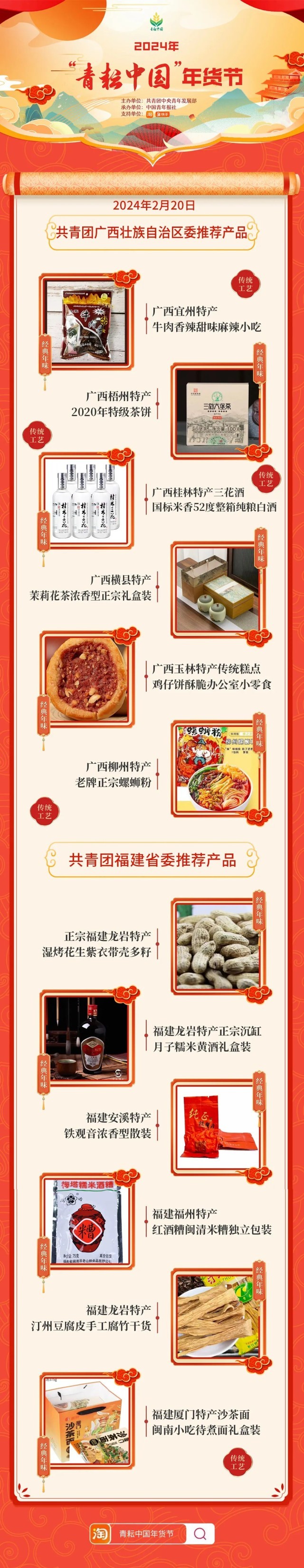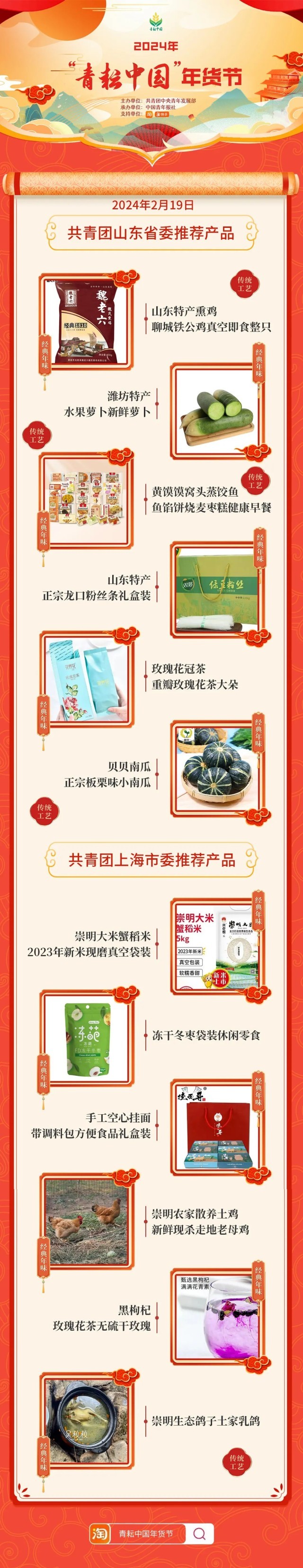 2024年“青耘中国”年货节将于1月31日至2月24日,开展“一日两省”主题日活动。用户可在淘宝APP搜索“青耘中国年货节”进入专题页选购产品。