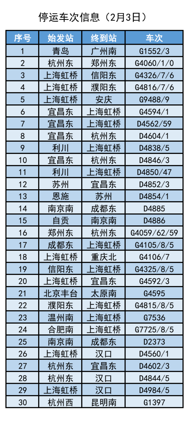 截至2月3日7时30分,计划停运2月3日至2月4日间39趟旅客列车。
