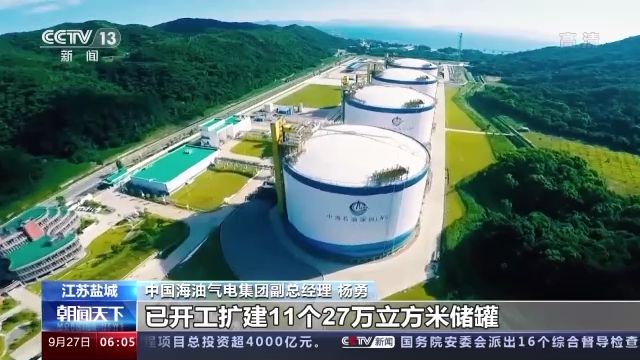 中国海油气电集团副总经理 杨勇:除了中国海油盐城“绿能港”外,我们还在积极推进宁波、珠海等地多个接收站扩容,已开工扩建11个27万立方米储罐,使这些接收站的储存能力基本实现翻一番,更好地保障国内天然气供应。
