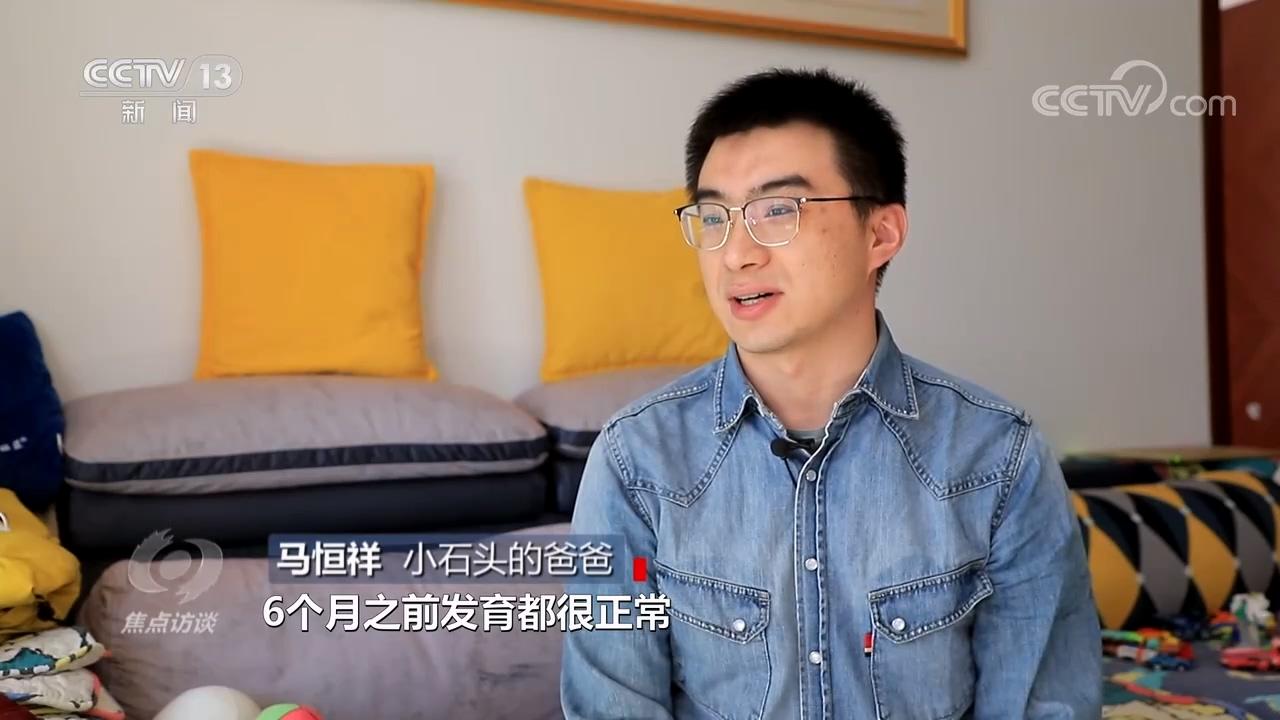 小石头的爸爸马恒祥:“6个月之前发育都很正常,像抬头、翻身、坐都没有问题,但是在8个月左右的时候,发现他的腿在躺着的时候不会动了,坐也坐不住了。”