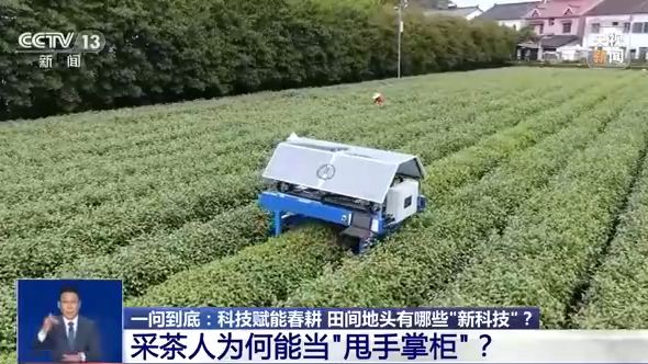 农业科技的运用打开了种田人的新空间,我们再去采茶园看看。眼下,正是春茶采摘旺季,各地的茶农都在忙着采摘茶芽。不过您知道吗?现在采茶人也能当“甩手掌柜”了。为了帮助茶农提产增收,当地联合高校机器人团队,经过不断尝试、改进,研发出了自主识别茶树芽叶的智能采茶机器人。跟随记者的镜头,一起去浙江杭州的茶园里看看。