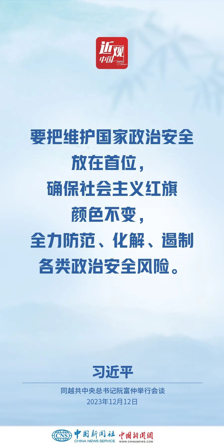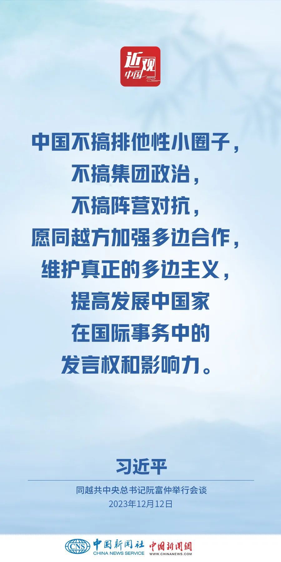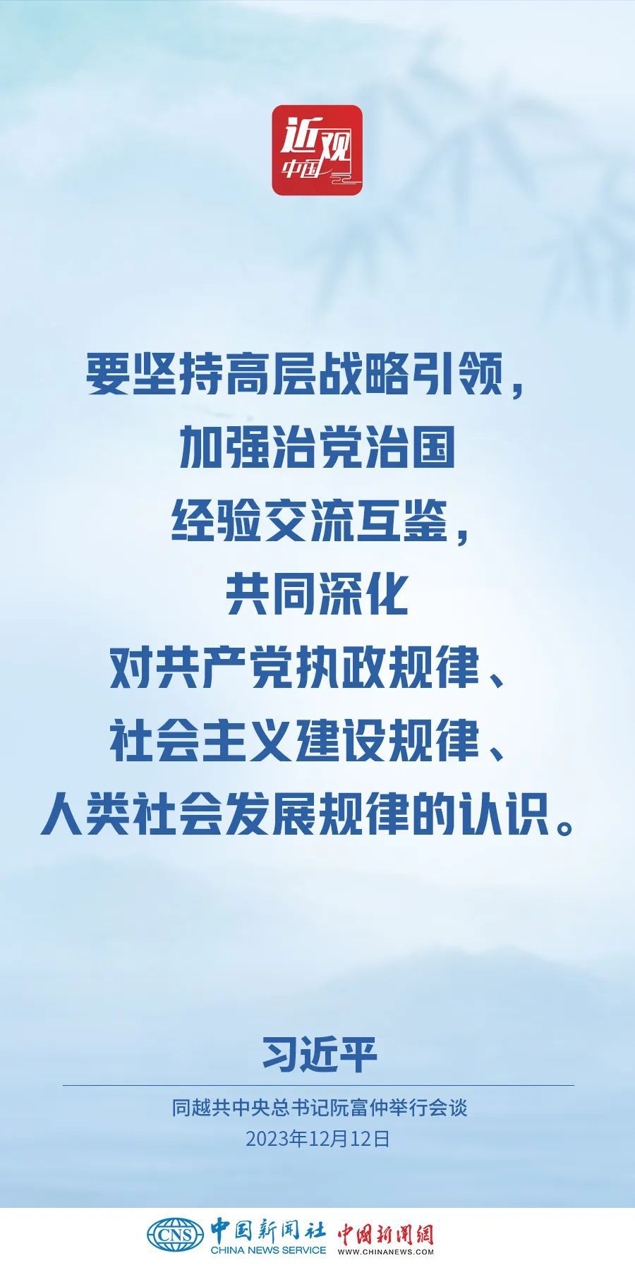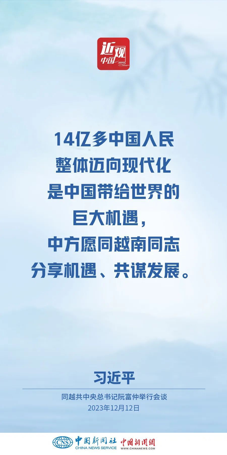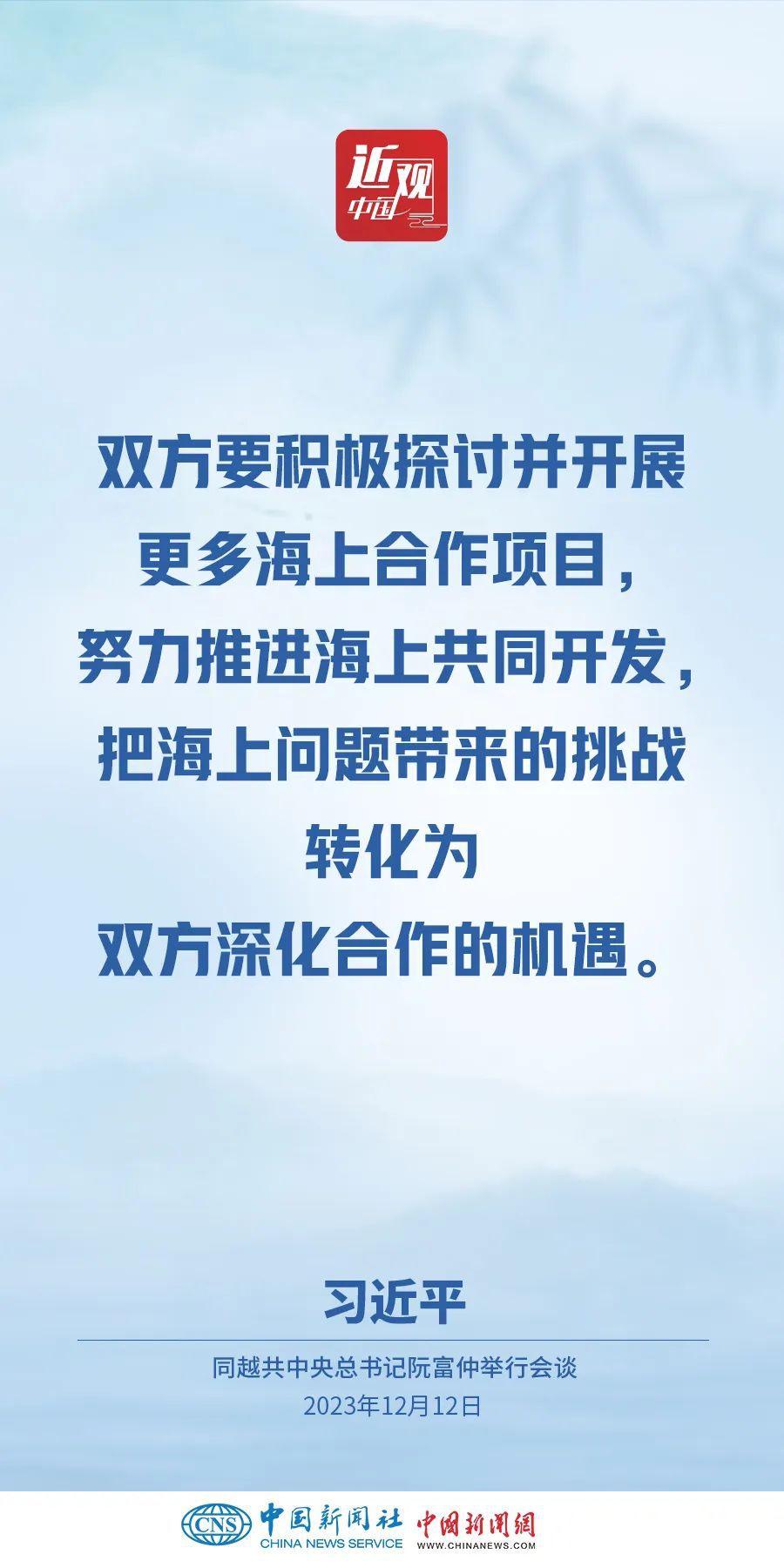 当地时间12月12日下午,刚刚抵达河内的中共中央总书记、国家主席习近平在越共中央驻地同越共中央总书记阮富仲举行会谈。双方宣布中越两党两国关系新定位,在深化中越全面战略合作伙伴关系基础上,携手构建具有战略意义的中越命运共同体。习近平指出——