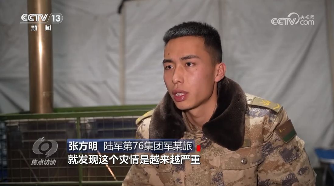 陆军第76集团军某旅章新禹:“据我们了解,他家五间房屋全部开裂,家人在院子里面搭了一个帐篷,我们优先让他回去解决自己的事情,然后再返回部队。”