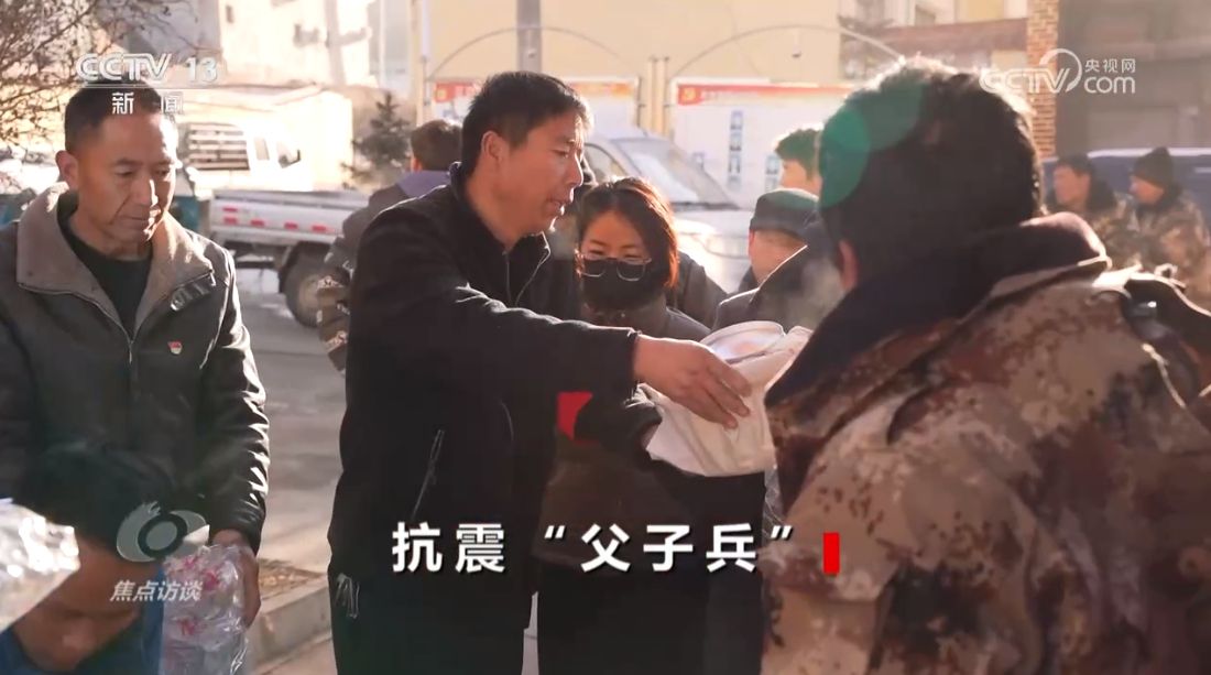 央视网消息(焦点访谈):眼下,甘肃积石山县灾后重建工作正在有序推进,确保灾区群众温暖过年成为了最紧要的任务。目前,当地受灾群众的安置都已经从帐篷转移到了板房,按照一户一间的标准,甘肃紧急搭建了15000间活动板房,其中,20间以上的集中安置点177处。我们的记者在震区采访的时候,碰到了这样一对父子,父亲是积石山县石塬镇的一名普通党员,儿子是陆军第76集团军某旅的一名战士,地震发生之后,父子俩携手并肩投入到抗震救灾的工作当中。