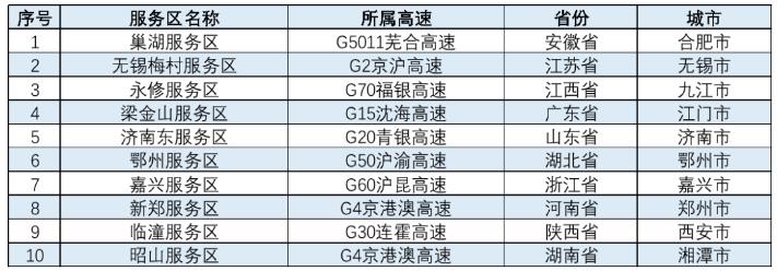 表 春节较繁忙服务区 (全文图表均来自交通运输部路网监测与应急处置中心官方微博)