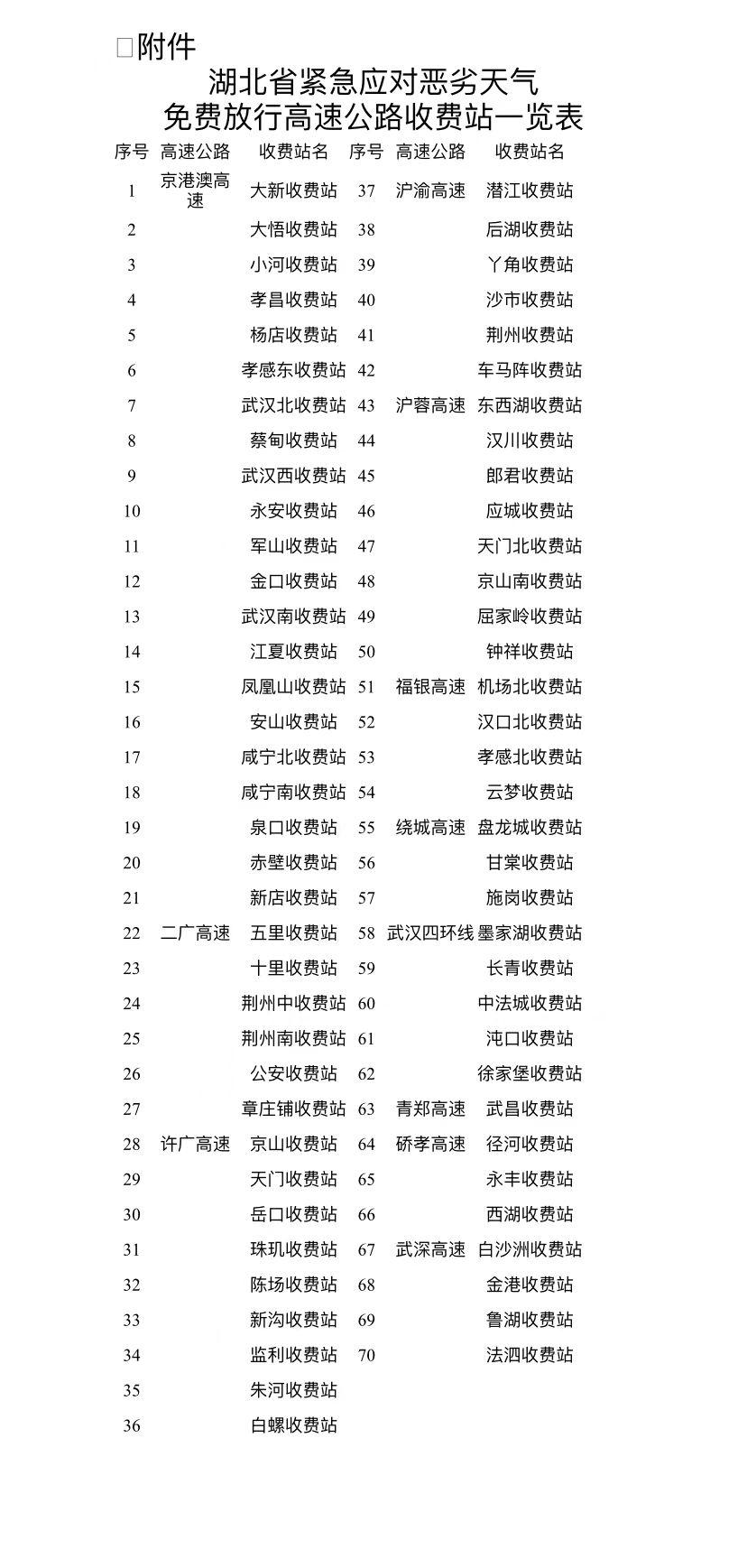 湖北70座收费站驶出车辆免费放行延长