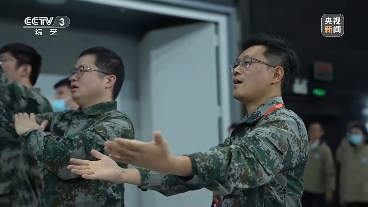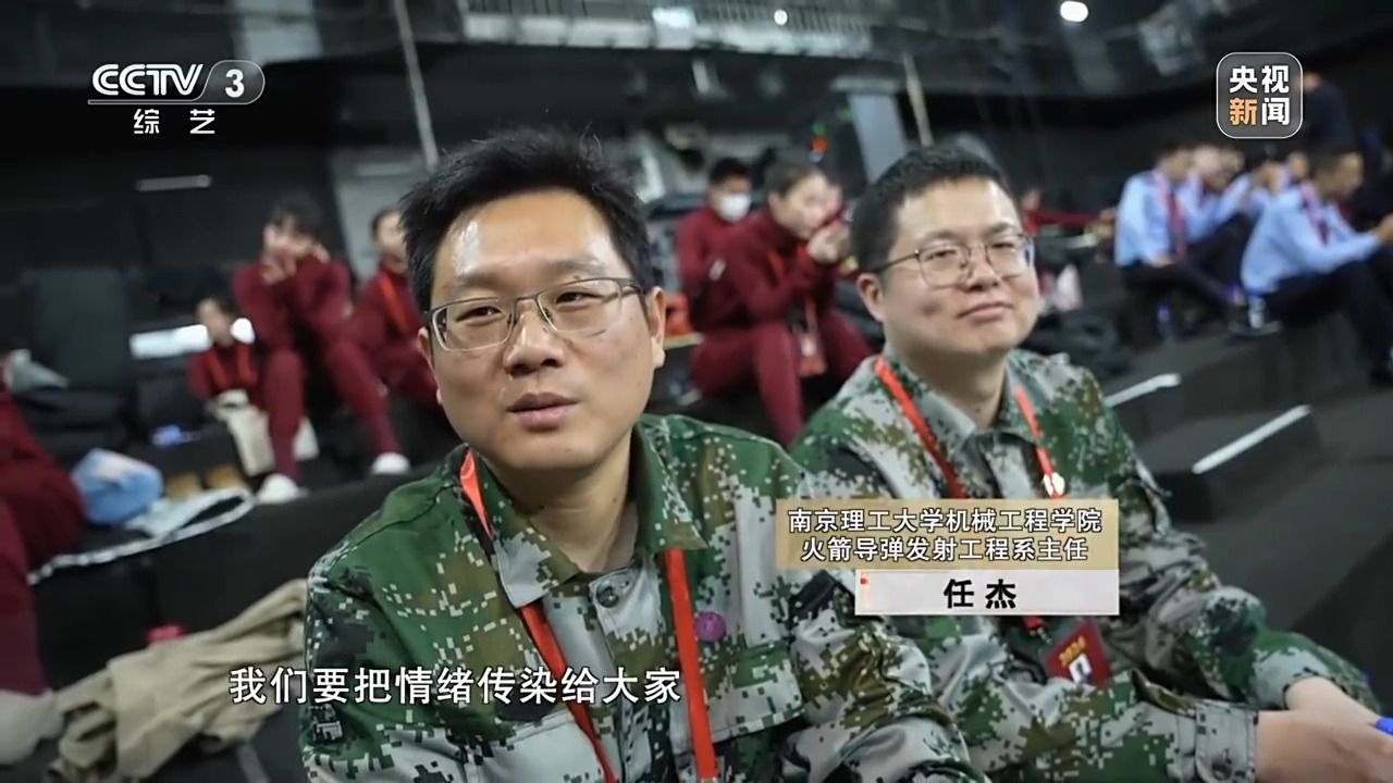 南京理工大学机械工程学院火箭导弹发射工程系主任 任杰:你看我们穿的这个服装跟国防是相关的,而且又是演的贝塔这个角色,都应该为它去增添光彩。我们在走廊里面不在乎大家的目光,虽然文艺表演不是我们的专长,但是我们拿出真诚的态度,因为回想小时候看动画片多幸福,小时候蹦蹦跳跳唱的时候,要把情绪传染给大家。