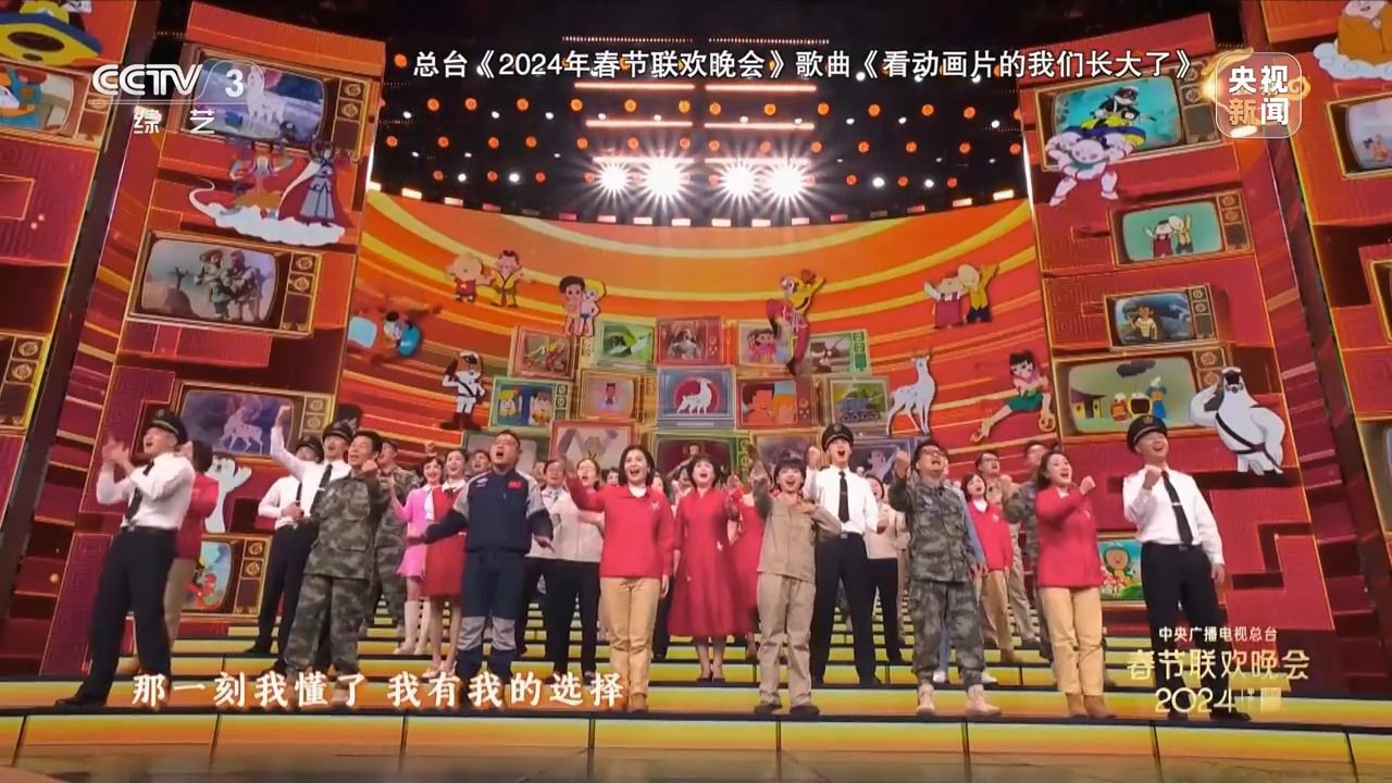 今年的总台春晚有一首与动画片有关的歌曲节目,从开飞机坦克的舒克贝塔到探索自然之谜的海尔兄弟,这些经典国产动画片中的主角伴随着几代人度过了美好的童年,也为许多孩子埋下了职业梦想的种子。春晚舞台上来自各行各业的劳动者,用演唱经典动画片主题曲的方式诉说着自己成长故事。