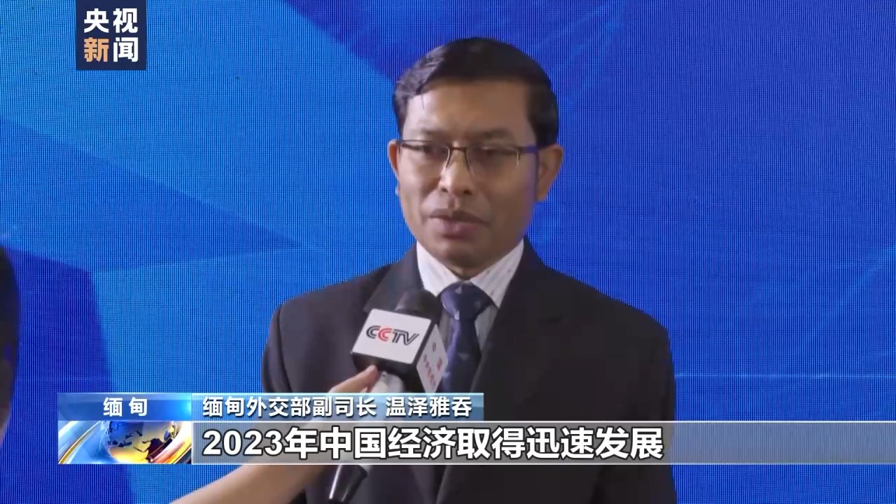 缅甸外交部副司长 温泽雅吞:2023年中国经济取得迅速发展。我相信,2024年中国经济将会继续保持稳步增长。中国的共建“一带一路”倡议,在推进中取得了巨大成就。着眼于各国共同发展,习近平主席提出了全球发展倡议,随着中国经济的稳步发展,周边国家也将在中国的带动下,获得更多发展与机遇。