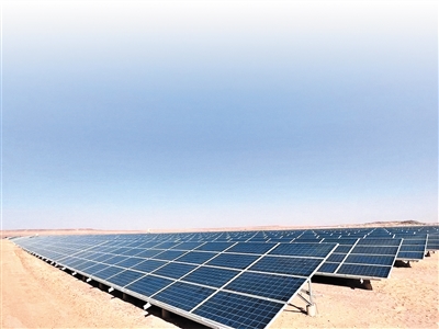 中国电建在阿尔及利亚撒哈拉沙漠中建设的光伏电站。