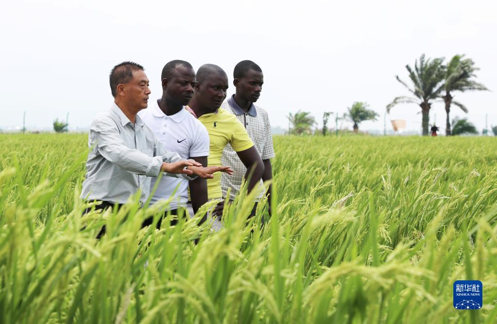 2022年10月29日,在布隆迪布班扎省基航加县,中国水稻专家但松柏(左一)指导当地农民种植水稻。新华社记者 董江辉 摄