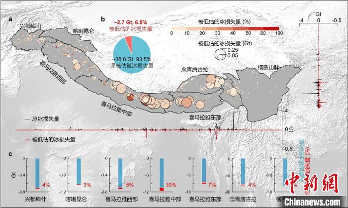 2000~2020年喜马拉雅水下冰质量损失低估量。 中科院青藏高原所 供图