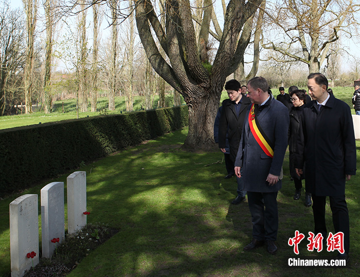 中新社比利时波普林格4月5日电 (记者 德永健)4月5日清明节,中国和比利时官员来到曾经的一战主战场比利时波普林格市,祭扫长眠在此的一战华工。