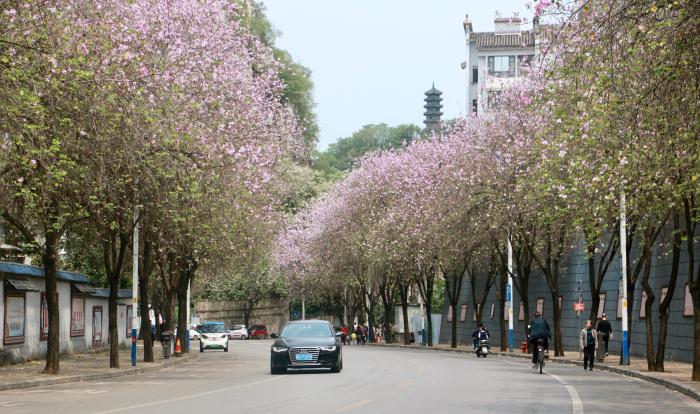 在社交平台上看到柳州满城洋紫荆盛开景色的冯祯雨,专程从湖南长沙市坐动车到柳州赏花。她表示:“乘坐当地推出的赏花专线公交车,领略花开满城的美景,感受春天的美好和生机,十分愉悦。”