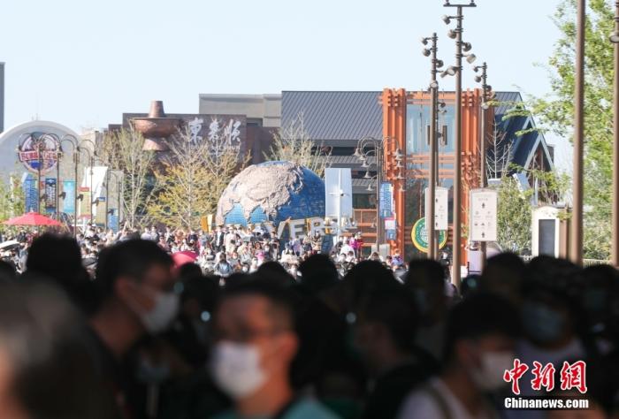 资料图:北京环球度假区内,众多游客从环球城市大道进入园区。 中新社记者 贾天勇 摄