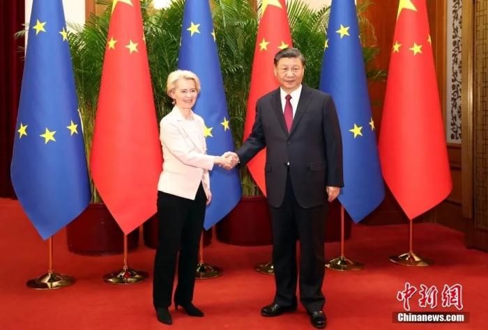 中新社记者:今年正值中国和欧盟建立全面战略伙伴关系20周年,近期欧洲领导人纷纷访华。冯德莱恩是继去年年底欧洲理事会主席米歇尔后,又一位访问中国的欧盟机构领导人。近期中欧之间的频繁互动释放出何种信号?未来中欧应如何妥处分歧,为中欧关系注入新动力,为世界提供稳定性?