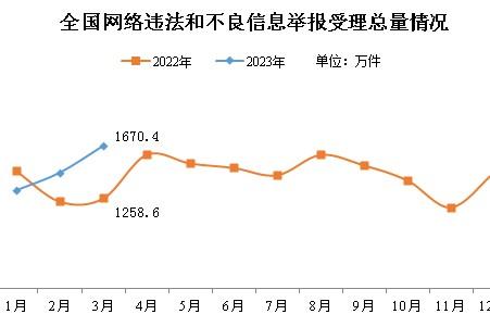 2023年3月全国受理网络违法和不良信息举报1670.4万件