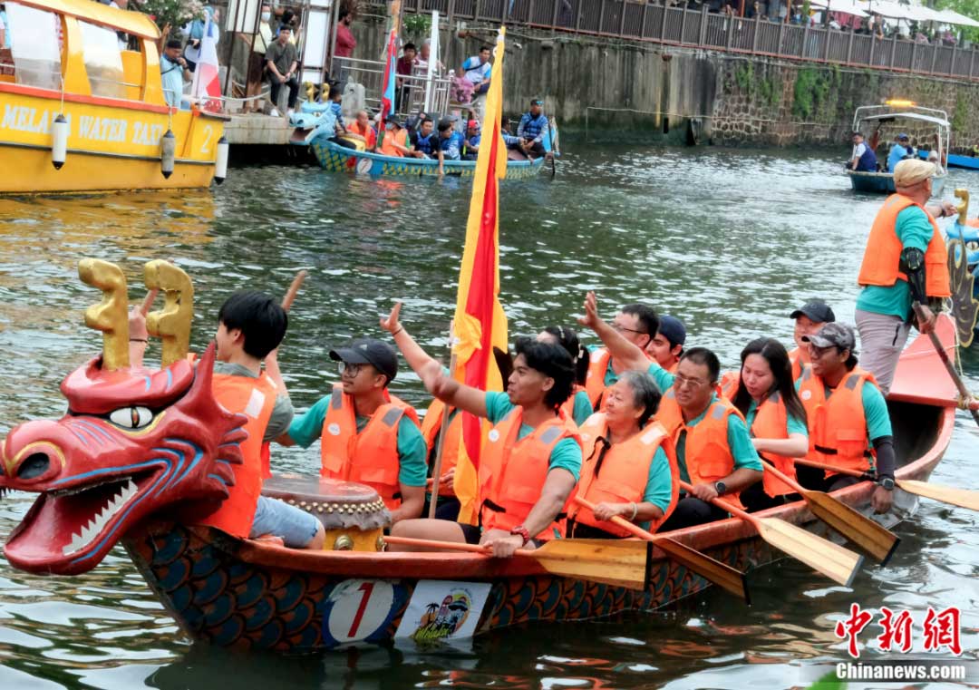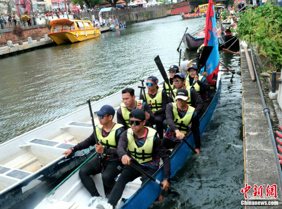 龙舟文化受到马六甲和马来西亚各族民众欢迎。图为2023年游龙舟活动6月18日开幕,很多参赛队都由马来裔或当地非华裔民众组成。陈悦 摄