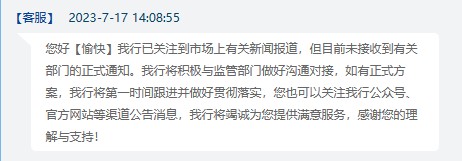 银行客服回复截图。