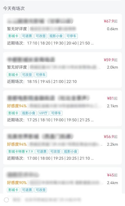 消费者提供的电影票价截图。