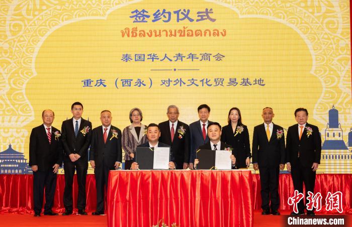 8月20日,48家在泰商协会及知名企业代表约200余人应邀参加了重庆文旅商贸推介展与产业高峰论坛。图为签约仪式现场。马兴海摄