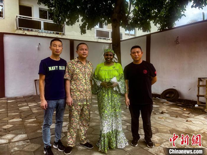 服务于山西援非医疗队的厨师刘长东(左二)受邀为当地宾客提供有中国特色的餐点。山西援非医疗队供图
