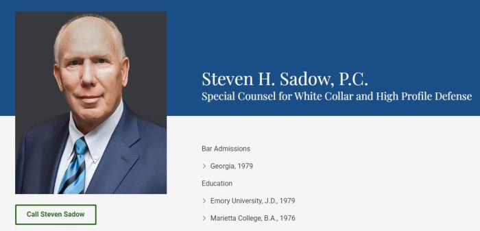 据报道,曾在佐治亚州为特朗普辩护的芬德林,将被一名来自亚特兰大的律师萨多取代,他的网站简介称他是“为白领和知名人士辩护的特别律师”。