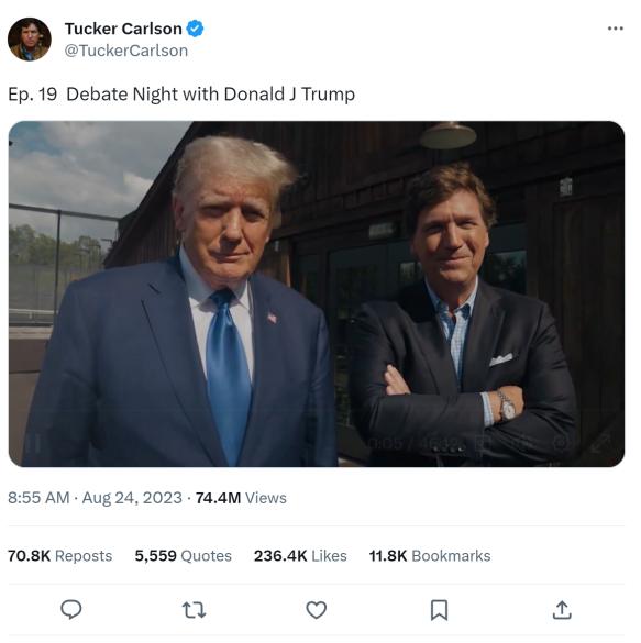 路透社指出,这段采访已在塔克·卡尔森的社交媒体平台上发布,短短半个小时内,浏览量已超过2200万。