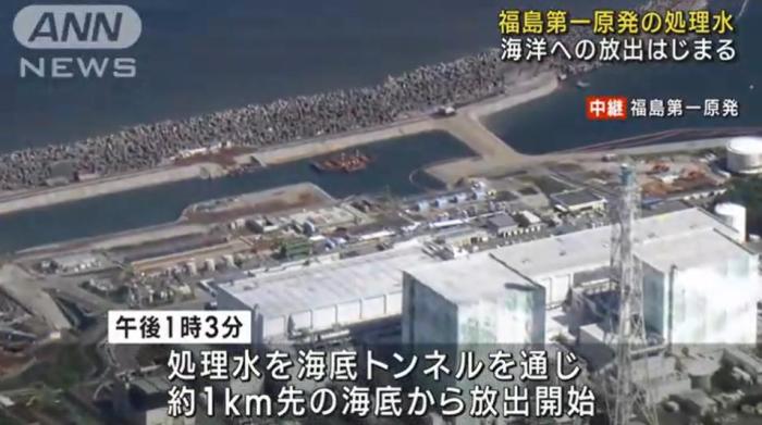 中新网8月24日电 据日本朝日电视台报道,当地时间24日下午1时许,东京电力公司通过海底管道,将福岛核污染水排放到距岸边1公里处的海中。