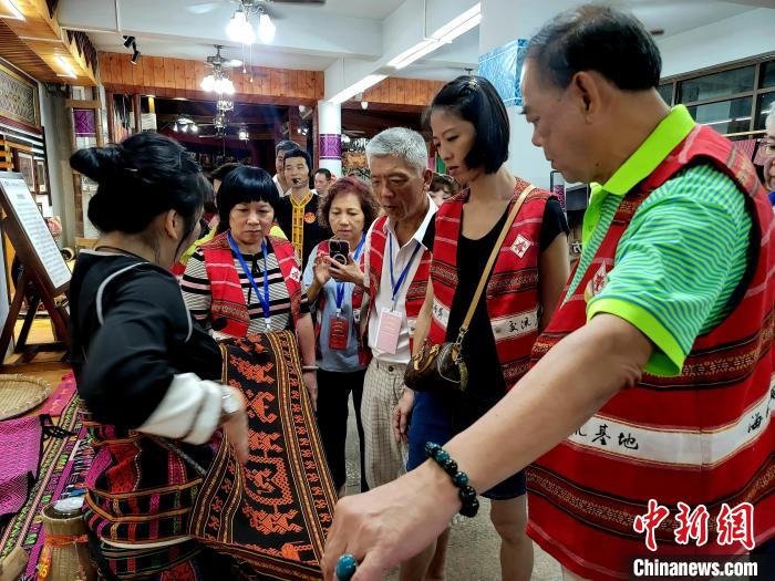 台北市商业总会一行在海南槟榔谷景区观看黎锦作品。 王晓斌 摄