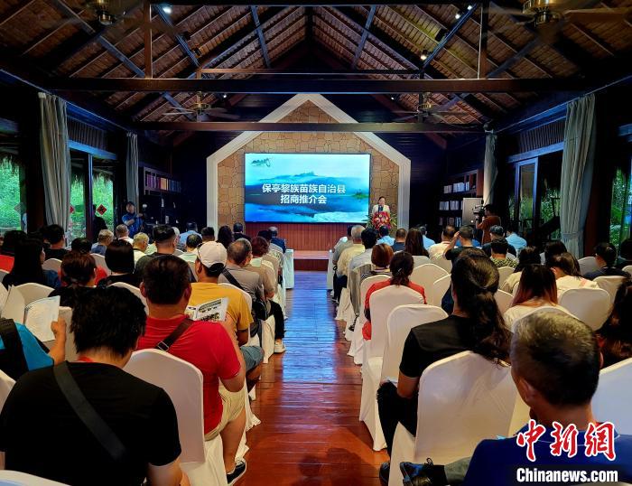保亭县向来访台湾同胞介绍当地开发投资项目。 王晓斌 摄